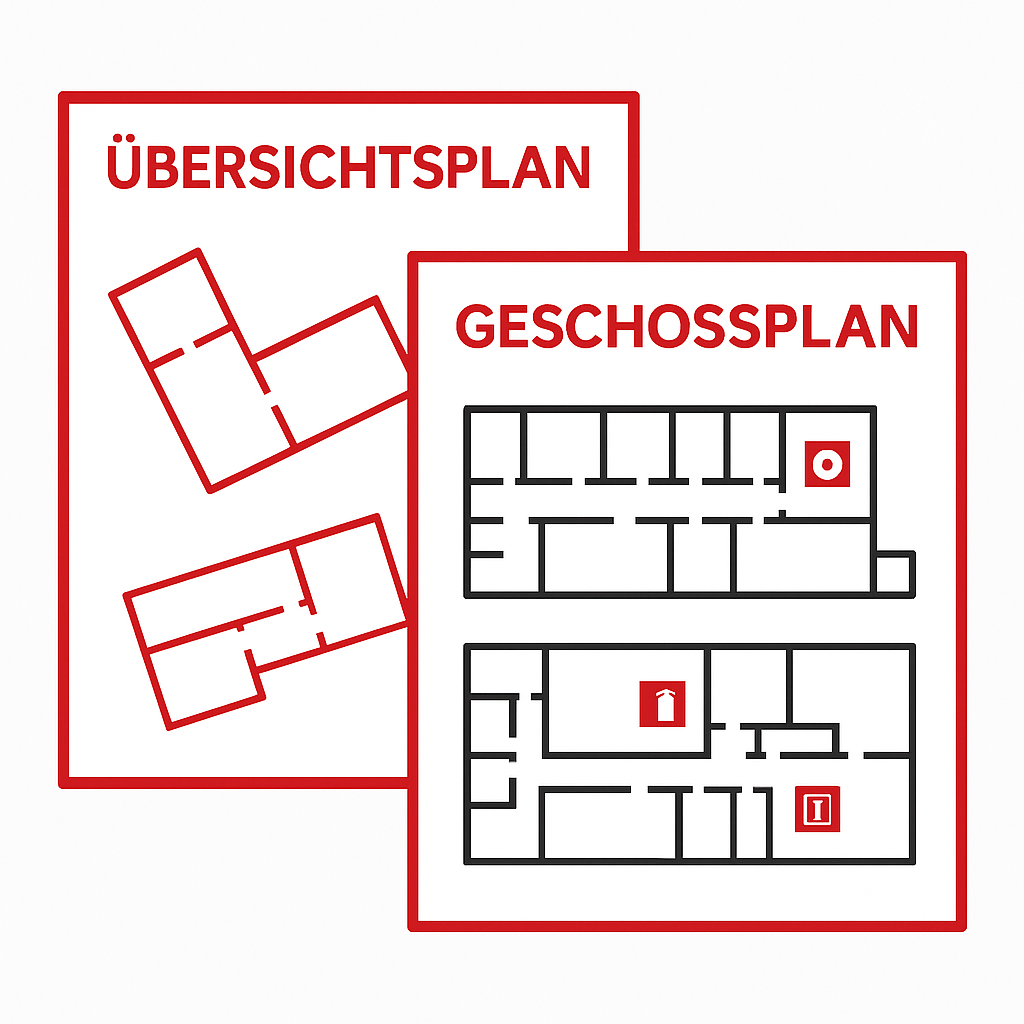 Nach DIN 14095 zur schnellen Orientierung der Feuerwehr. Sie liefert Informationen zu Angriffswegen, Löscheinrichtungen und Gefahrenschwerpunkten.